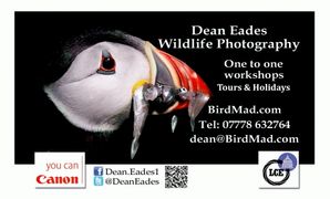 Dean’s work has appeared on the BBC and ITV. Also worked for Canon & London Camera Exchange. Dyson Farming. As well as being published in books and several magazines National Geographic , BBC Wildlife Magazine , Canon EOS , BirdGuides Photo of year winner